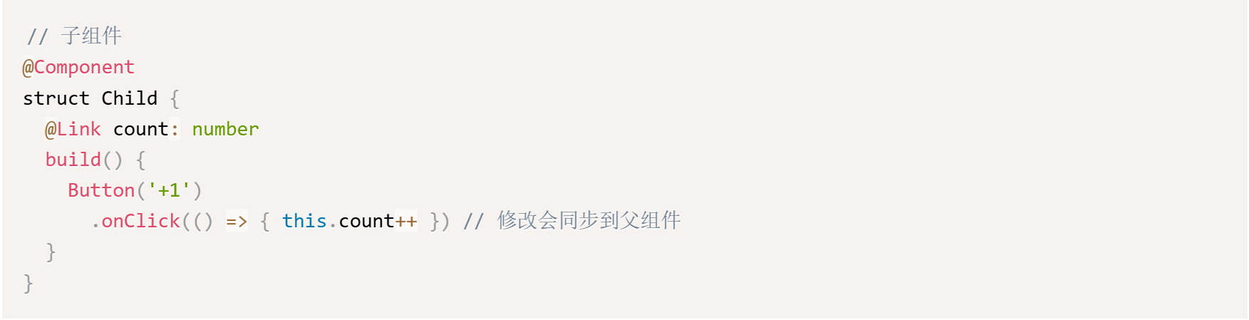@State:声明组件内部的状态变量,修改后会自动更新关联的 UI。
